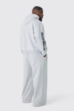 Home SweatSuits grey-marl-plus-moto-graphic-oversized-hoodie